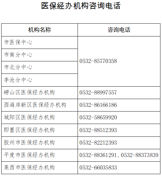 居民基本养老保险和居民社会医疗保险缴费事宜可关注微信公众号“青岛税务”了解或拨打咨询电话12366。居民基本养老保险政策可关注微信公众号“青岛人社”“青岛12333”了解或拨打咨询电话12333。居民社会医疗保险政策可关注微信公众号“青岛医疗保障”了解或拨打各区市医保经办机构咨询电话(详见附件)。